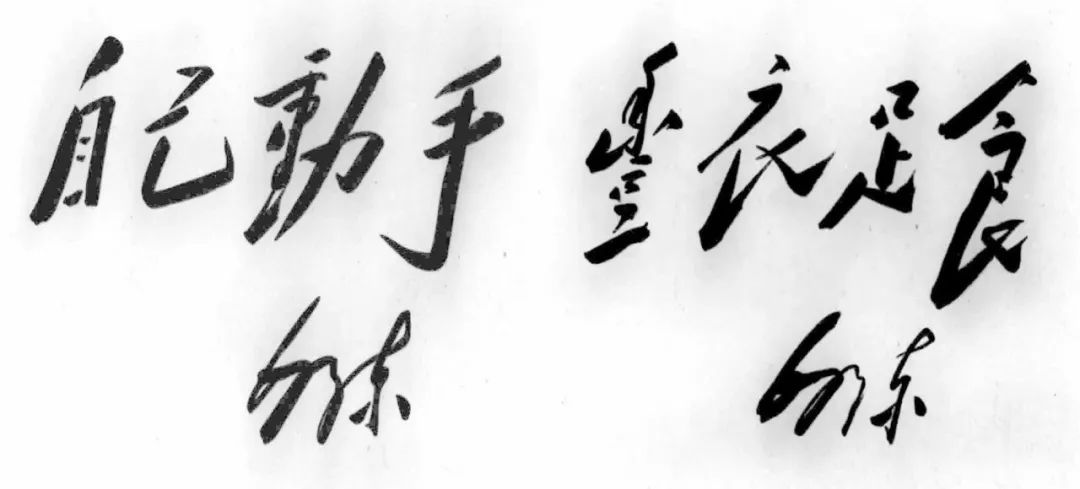 毛澤東為影片《生產與戰斗結合起來》題寫“自己動手”和“豐衣足食”。新華社發(資料照片)