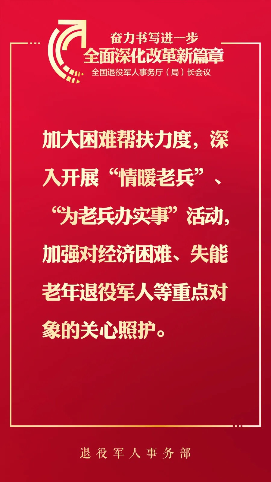1月9日,全國(guó)退役軍人事務(wù)廳(局)長(zhǎng)會(huì)議在京召開。退役軍人事務(wù)部黨組書記、部長(zhǎng)裴金佳出席會(huì)議并講話。現(xiàn)摘錄部分內(nèi)容,予以刊發(fā)。