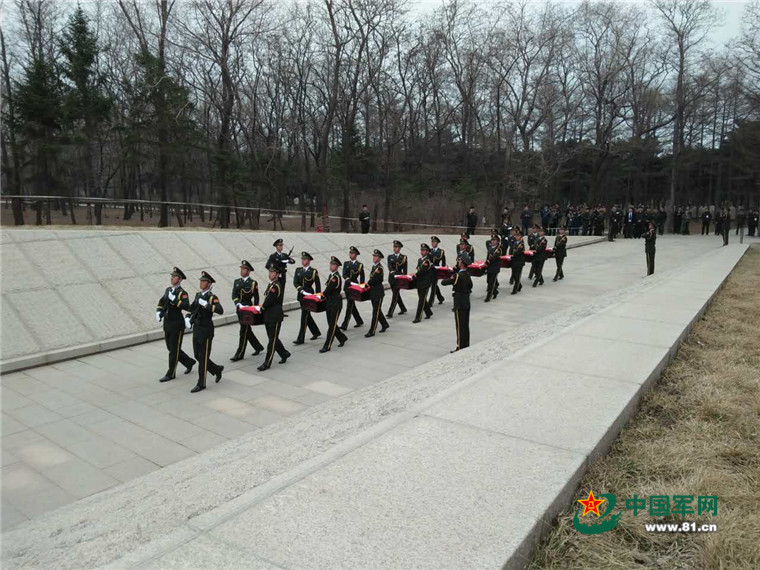 中國軍網(wǎng)沈陽4月1日電(穆可雙、牛輝、李祥輝)蒼松肅立,翠柏靜哀。今天上午10時,軍地各界約300名代表齊集沈陽抗美援朝烈士陵園下沉式紀(jì)念廣場,第三批36具在韓志愿軍烈士遺骸安葬儀式隆重舉行。國家民政部、外交部、中央軍委政治工作部、北部戰(zhàn)區(qū)陸軍部隊,以及抗美援朝老戰(zhàn)士、中小學(xué)生等各界人士來到陵園緬懷英烈。